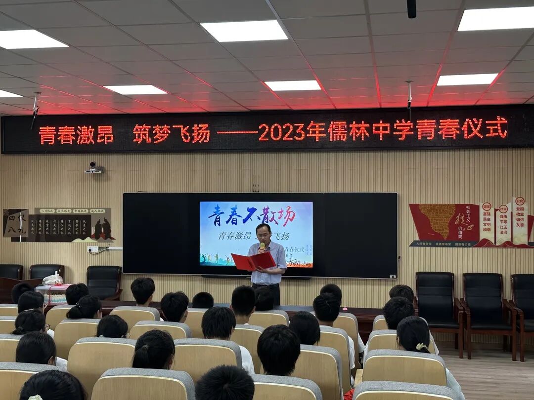 6月2日下午儒林中学八年级“青春激昂 筑梦飞扬”十四岁青春仪式在校隆重举行。